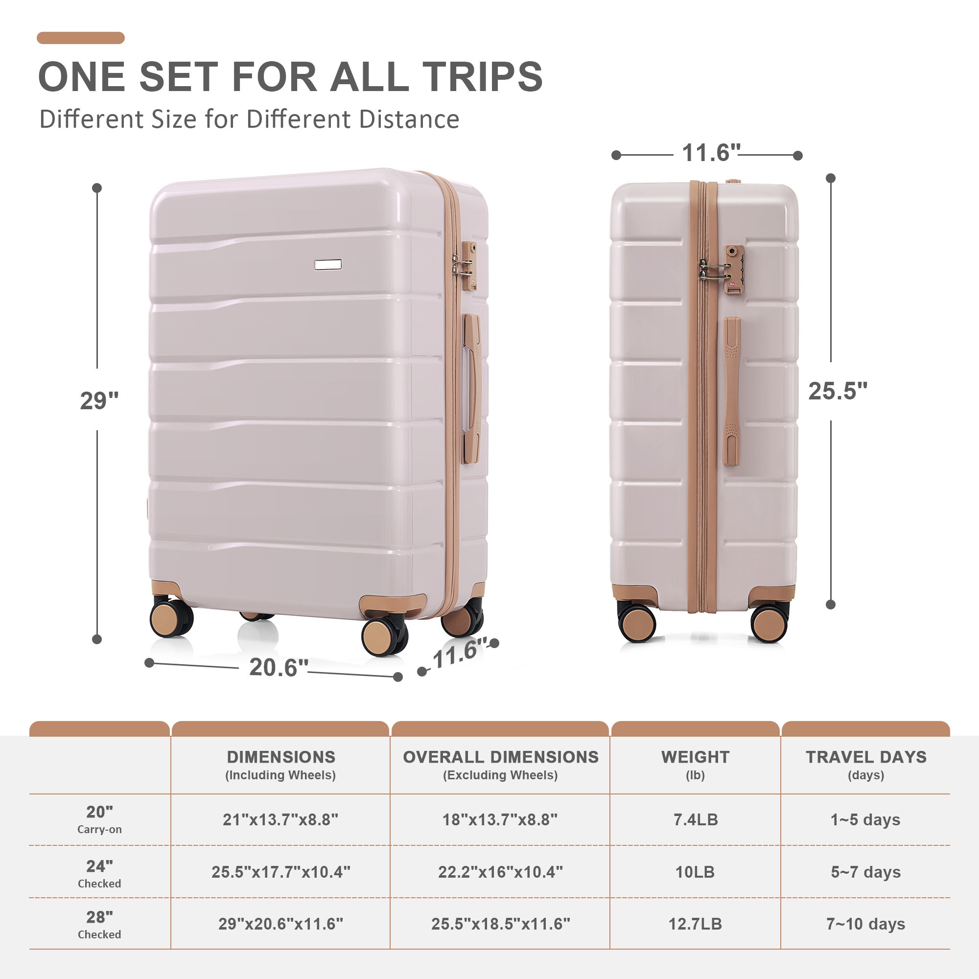 Weekend Escapes: The 20-inch suitcase is perfect for a quick trip, with enough space for your essentials while remaining compact for carry-on requirements.